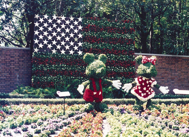 写真は「International Flower & Garden Festival」を初めて視察した時に出会ったミッキーとミニーのトピアリー。