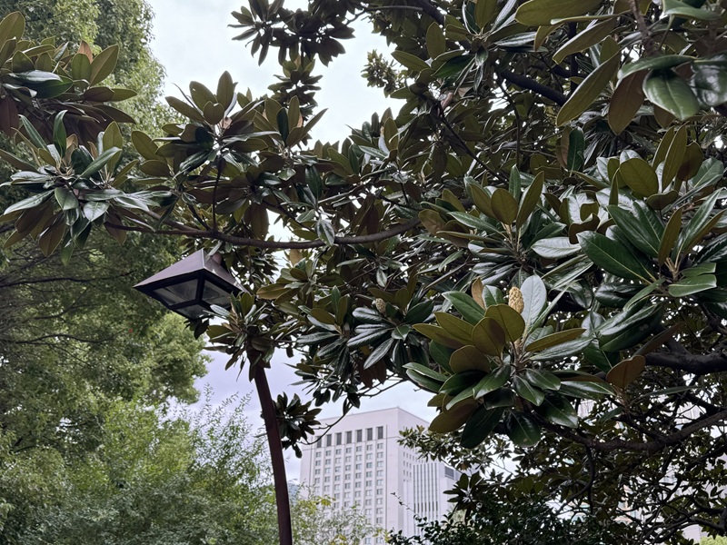日比谷公園のタイサンボクは管理事務所のはす向かいにあります。