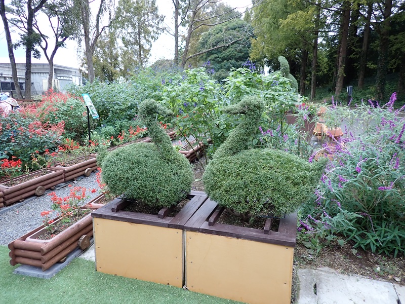 水戸市植物公園のサルビアガーデンにローズマリーのトピアリーが沢山あります。