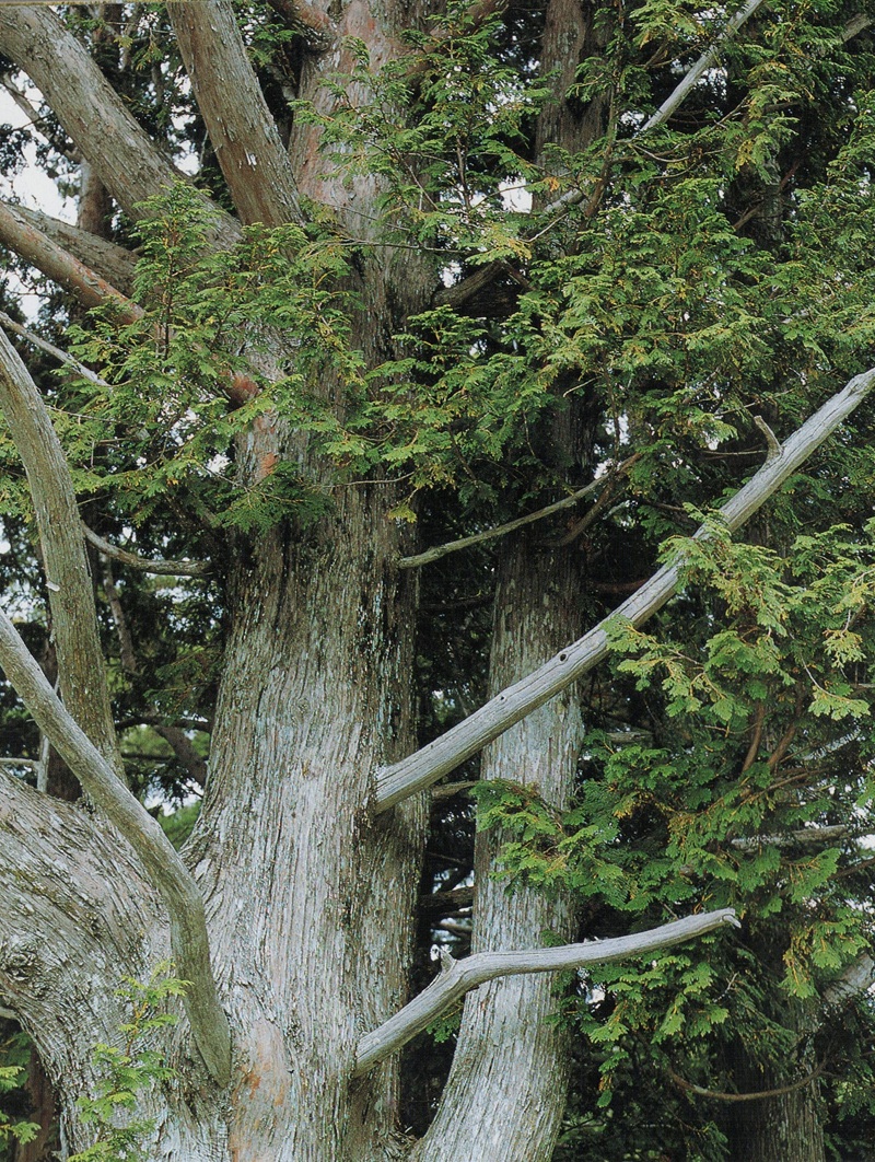 こちらは元文年間(1736~1741年)に渡来し、明治中期に渡来したニオイヒバと共に広く植栽されてコニファーブームの先駆をなしました(『花図鑑樹木』より)。