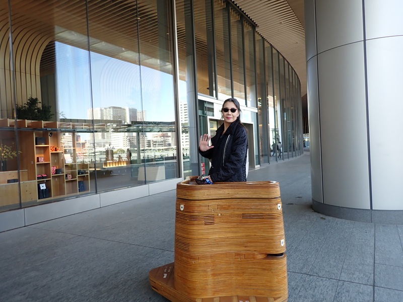 施設案内のアナウンスをしながらゆっくりと移動するこの乗り物は「自動走行立ち乗りモビリティ「iino(イイノ)」」というらしい。