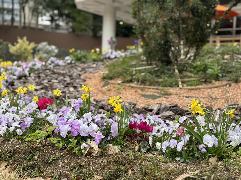 春を告げるトピアリー花壇