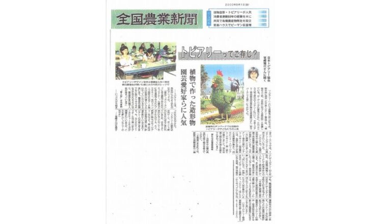 2000.01.01 全国農業新聞の1月1日号に干支の龍のトピアリーが掲載されました。