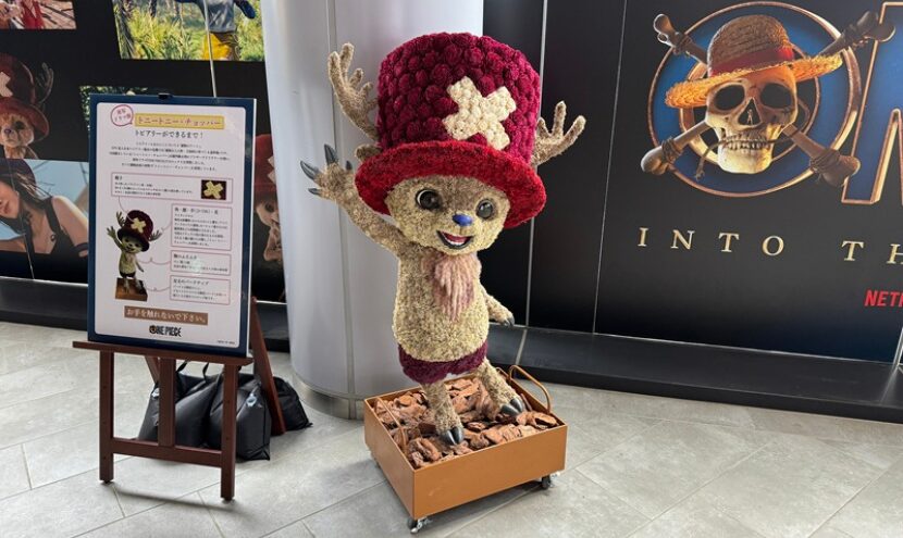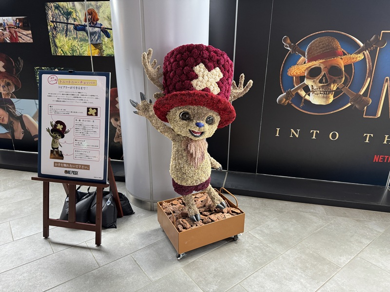 アニメキャラ・ロゴマーク 実写ドラマ「ONE PIECE」: トニートニー・チョッパートピアリー in Shibuya 2026年3月4日 渋谷サクラステージ<東京都渋谷区> 3月10日にNetflix世界独占配信スタートの実写ドラマ「ONE PIECE」シーズン2。そのプロモーションイベントを盛り上げる「トニートニー・チョッパー」のトピアリーを制作しました。 キャラクターのトピアリー制作は精巧さが求められる“超難関”ですが、素晴らしい仕上がりの力作です。 展示場所:渋谷サクラステージ「2F 桜丘広場」 展示時間:10:00〜20:00 『ONE PIECE』(ワンピース)の全世界累計発行部数は、2026年3月4日発売の最新第114巻で6億部を突破。そして実写ドラマ「ONE PIECE」シーズン2は3月10日にNetflix世界独占配信。 実写ドラマ「ONE PIECE」シーズン2に出演している「トニートニー・チョッパー」のトピアリーは、3月4日に渋谷でスタートしたプロモーションイベント「チョッパー サクラナイト in Shibuya Sakura Stage」〜祝!『ONE PIECE』世界累計発行部数6億部&実写ドラマシーズン2配信!!〜」に登場し、プロモーションを盛り上げています。 今回は、植物由来のプリザーブドフラワーでトニートニー・チョッパーを再現。こだわりは虹彩まで再現した「瞳」と「歯」です。 キャラクター制作は精巧な再現技術が求められる、プロ冥利に尽きるお仕事なのですが、ONE PIECEスタッフ公式Xにも紹介されました! その制作の裏側を特別にご紹介いたします。 まずは躯体(植物を取り付ける型)制作の前に、素材(実際に使用するプリザーブドフラワー)を採寸。 躯体の大きさを決めるとともに、材料の数量を算出します。 プリザーブドフラワーを採寸 躯体が仕上がったら、イメージ図と照らし合わせ、1輪1輪丁寧に取り付けていきます。 ドライフラワーの取り付け 大切なポイント「左角の金具」の位置決め。 帽子の部分を埋め尽くす花に干渉することなく、かつキャラクターデザインに忠実な位置を慎重に見極めます。 「左角の金具」『ONE PIECE』好きの方ならこのこだわり、分かっていただけるでしょうか? 最もこだわったのが「瞳」と「歯」 「瞳」には虹彩を、口の中は「舌の位置」までイメージ図に忠実に仕上げました。この再現性は経験豊富な職人が揃う“チームネバーランド”ならではの技術です。 “チームネバーランド”ならではの技術 可動式の頑丈な土台に固定して、いざ会場の桜丘広場へ。 毎日10:00~20:00までこの場所でイベントを盛り上げています。 可動式のトピアリーは設置場所を変えることができるので、 イベント時はもちろん、終わった後も別の場所で設置が可能。 活躍の場が広がるので、お客様にも喜んでいただいています。 可動式のトピアリーは、場所を変えての設置が可能 トピアリーの横には、トピアリーができるまでを解説したパネルも!各素材の詳細もお伝えしていますので、ぜひ現地でチェックしてみてくださいね。 地域の高齢者とボランティアが参加「テラスガーデニング...